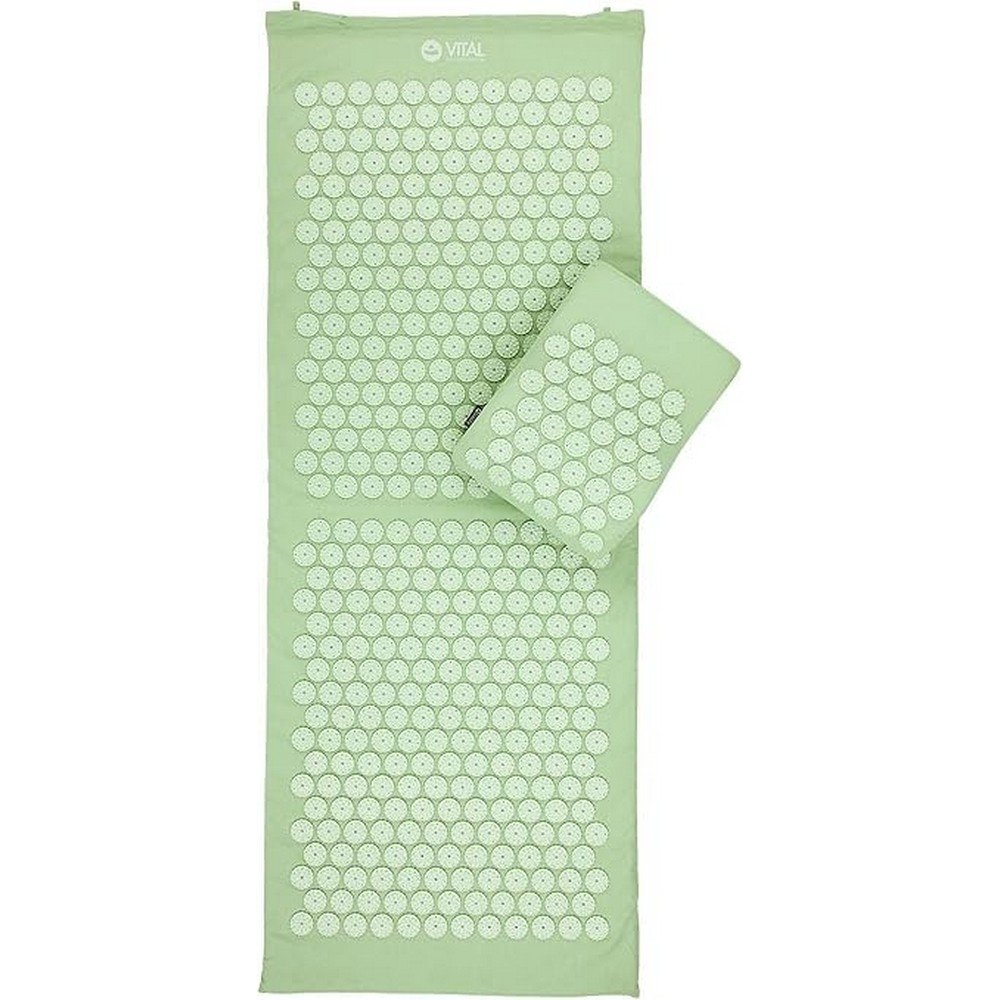The VITAL Acupressure Set includes a mat and pillow designed to relieve tension and discomfort in the back and neck. The pastel green set uses thousands of acupressure points to stimulate circulation, reduce muscle stiffness, and promote deep relaxation. Ideal for meditation, stress relief, and post-exercise recovery, this affordable set supports wellness for men and women. The mat revitalizes the back, while the pillow provides targeted neck support, making it perfect for home, office, or travel use. Lightweight and portable, this set offers soothing relaxation and muscle relief anywhere you need it.