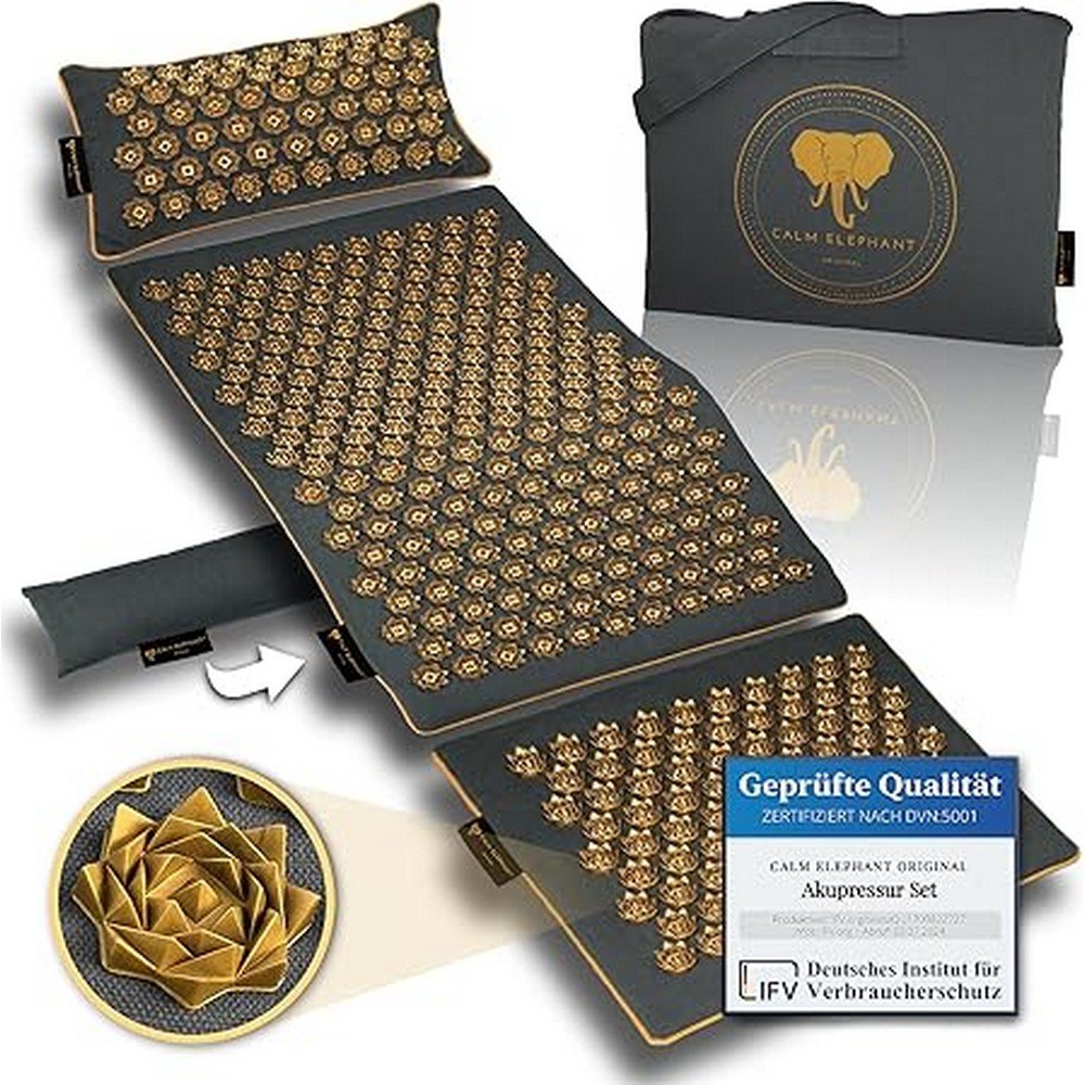 Relieves back and neck pain-CALM ELEPHANT ORIGINAL® Genuine Acupressure Mat with Cushion XXL Set of 5 Massage Mat Back Tension Relieve Acupuncture Mat Cushion with Heat Function, Lumbar Cushion, Doormat & Bag, Grey, Reduces muscle tension-CALM ELEPHANT ORIGINAL® Genuine Acupressure Mat with Cushion XXL Set of 5 Massage Mat Back Tension Relieve Acupuncture Mat Cushion with Heat Function, Lumbar Cushion, Doormat & Bag, Grey, Enhances relaxation-CALM ELEPHANT ORIGINAL® Genuine Acupressure Mat with Cushion XXL Set of 5 Massage Mat Back Tension Relieve Acupuncture Mat Cushion with Heat Function, Lumbar Cushion, Doormat & Bag, Grey, Supports circulation-CALM ELEPHANT ORIGINAL® Genuine Acupressure Mat with Cushion XXL Set of 5 Massage Mat Back Tension Relieve Acupuncture Mat Cushion with Heat Function, Lumbar Cushion, Doormat & Bag, Grey