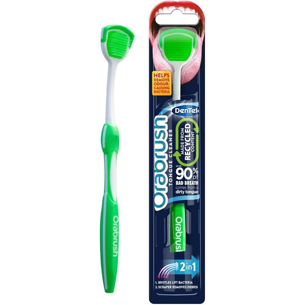 The DenTek Orabrush Tongue Cleaner combines ultra-soft micro-pointed bristles with a built-in scraper to remove tongue coating and bacteria that cause bad breath. Designed for effective and gentle cleaning, it’s perfect for improving overall oral hygiene.