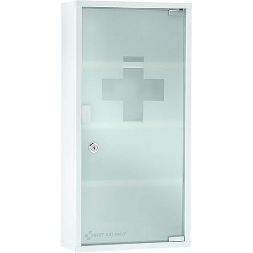 This lockable metal medicine cabinet from First Aid Only (P-10203 00) features 4 compartments for organized storage of medicines and first aid supplies. Designed as a wall-mounted apothecary-style cabinet, it measures 60 x 30 x 12 cm, keeping items neatly arranged, visible, and easily accessible. Its white finish blends with any interior, while the lockable design ensures safety and protection from dust and unauthorized access. Ideal for home, office, or professional use.
