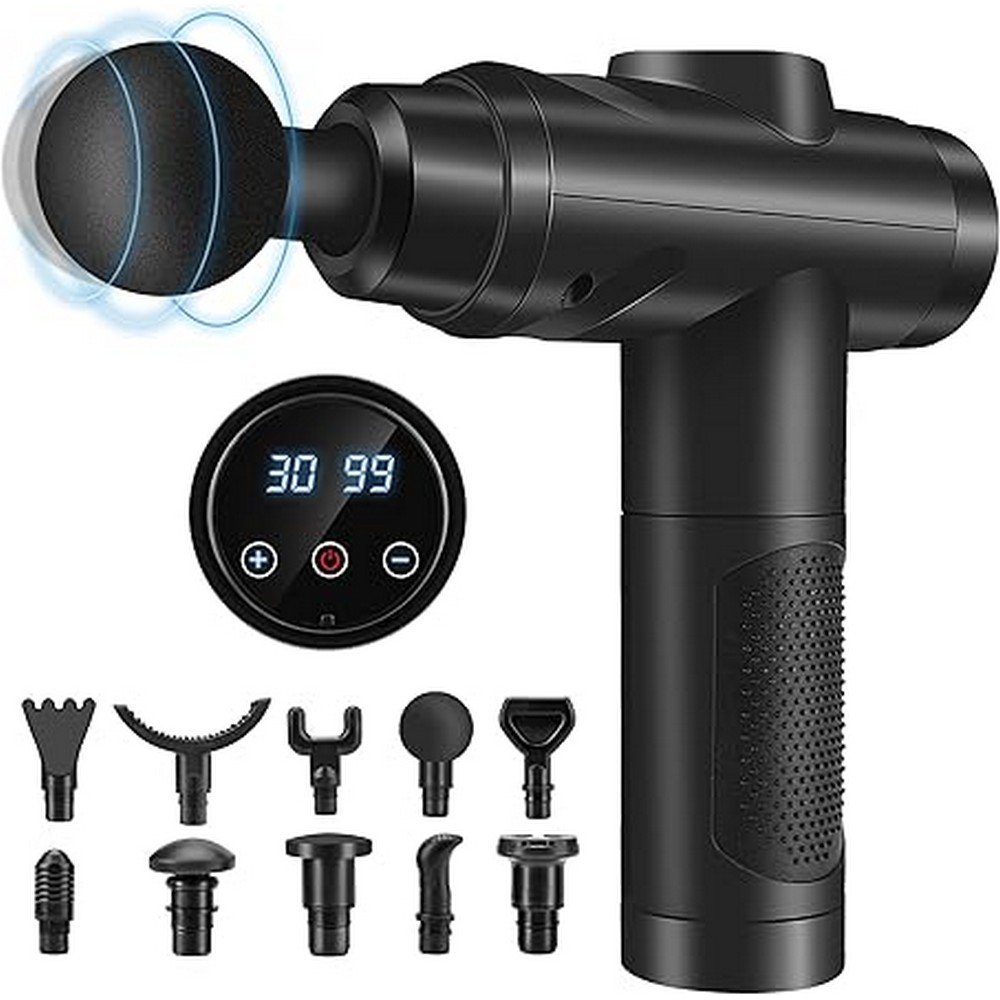 Massage Gun, Muscle Percussion Massager with 30 Speeds, Quiet Hand Massager, with LCD Touchscreen, 10 Heads, for Shoulders, Body, Back, Relaxation