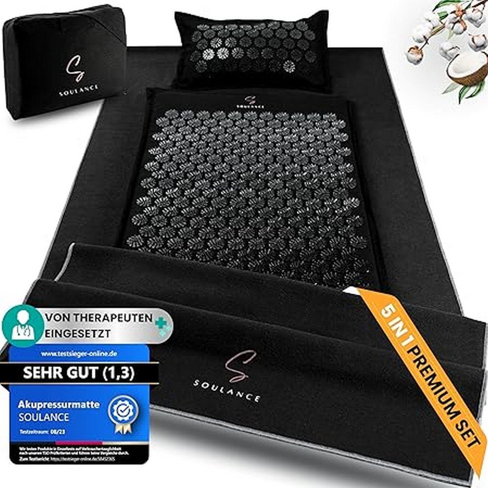 Relieves back and neck pain-SOULANCE Acupressure Mat with Pillow - 5-in-1 Premium Set [Includes Yoga Cloth] & Carry Bag, Coconut Fibre Filling - Massage Mat, Acupuncture Mat for Neck and Back Pain, Reduces muscle tension-SOULANCE Acupressure Mat with Pillow - 5-in-1 Premium Set [Includes Yoga Cloth] & Carry Bag, Coconut Fibre Filling - Massage Mat, Acupuncture Mat for Neck and Back Pain, Enhances relaxation-SOULANCE Acupressure Mat with Pillow - 5-in-1 Premium Set [Includes Yoga Cloth] & Carry Bag, Coconut Fibre Filling - Massage Mat, Acupuncture Mat for Neck and Back Pain, Supports circulation-SOULANCE Acupressure Mat with Pillow - 5-in-1 Premium Set [Includes Yoga Cloth] & Carry Bag, Coconut Fibre Filling - Massage Mat, Acupuncture Mat for Neck and Back Pain